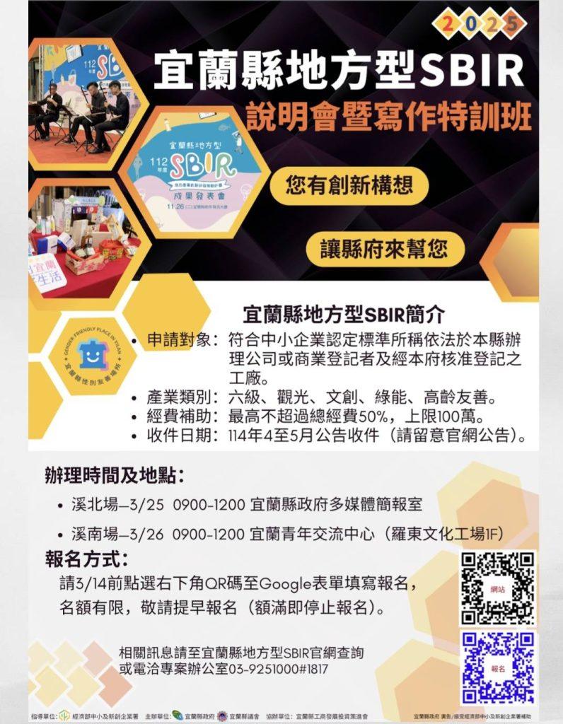 200 秘書處 宜蘭縣地方型SBIR說明會暨寫作特訓班 print.tw 2 月 19, 2025 0 114年度宜蘭縣地方產業創新研發推動計畫(地方型SBIR)計畫說明會暨計畫書撰寫訓練研討會 查看 QR-Code× 🠋 下載 QRCode 🠋 點擊便能為這篇文章進行評等! [評等總次數: 0,平均評等: 0] 重要公告